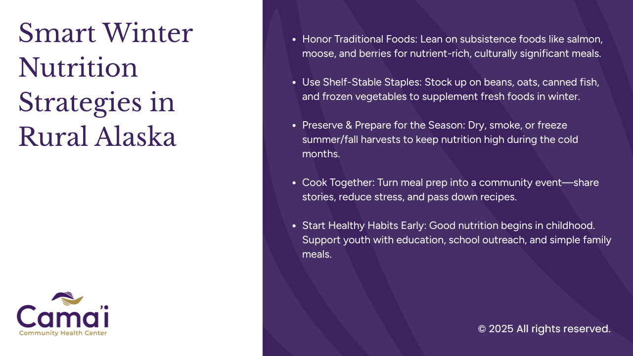 Connect with Cama’i today for personalized nutrition support tailored to rural Alaska’s unique winter needs.
